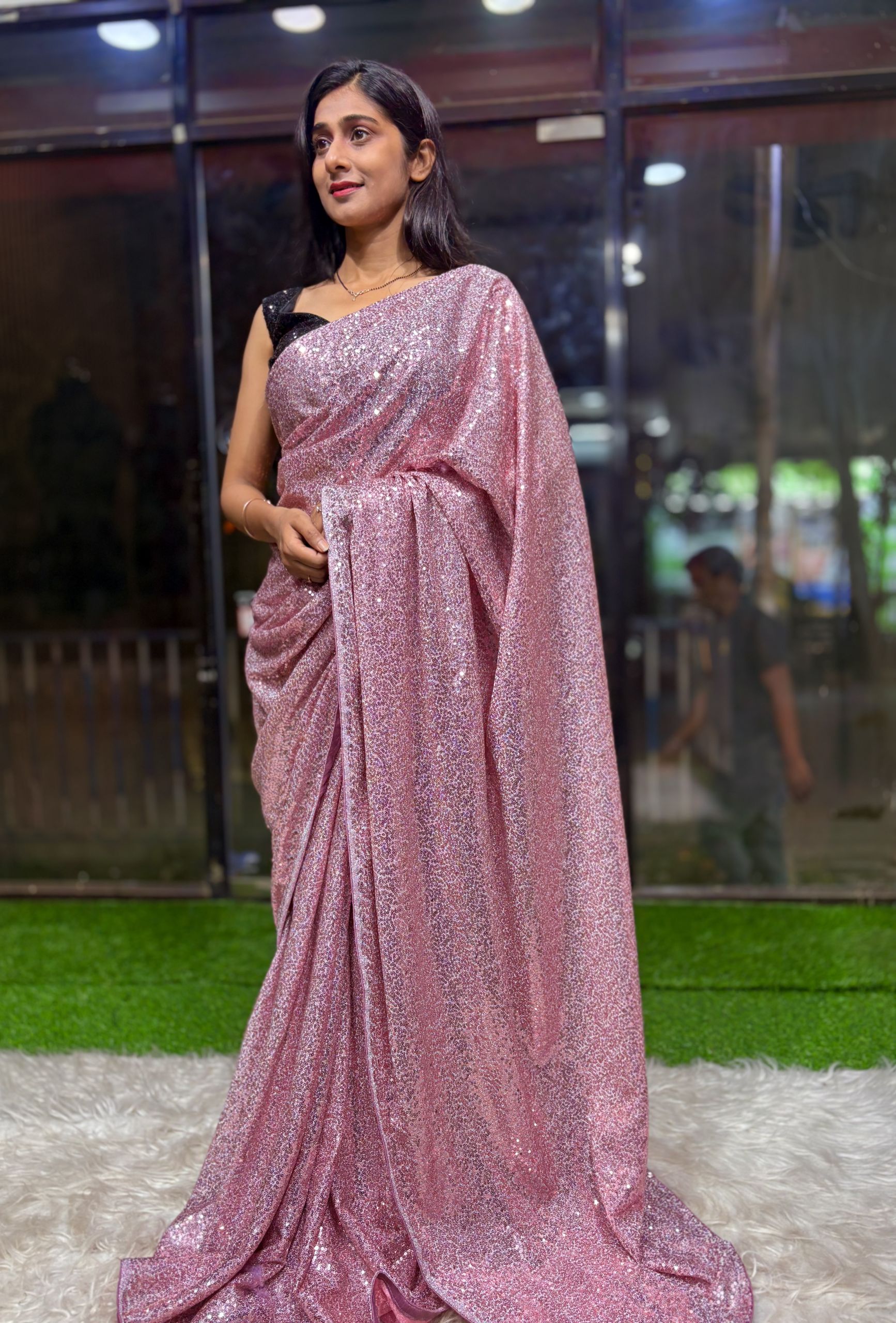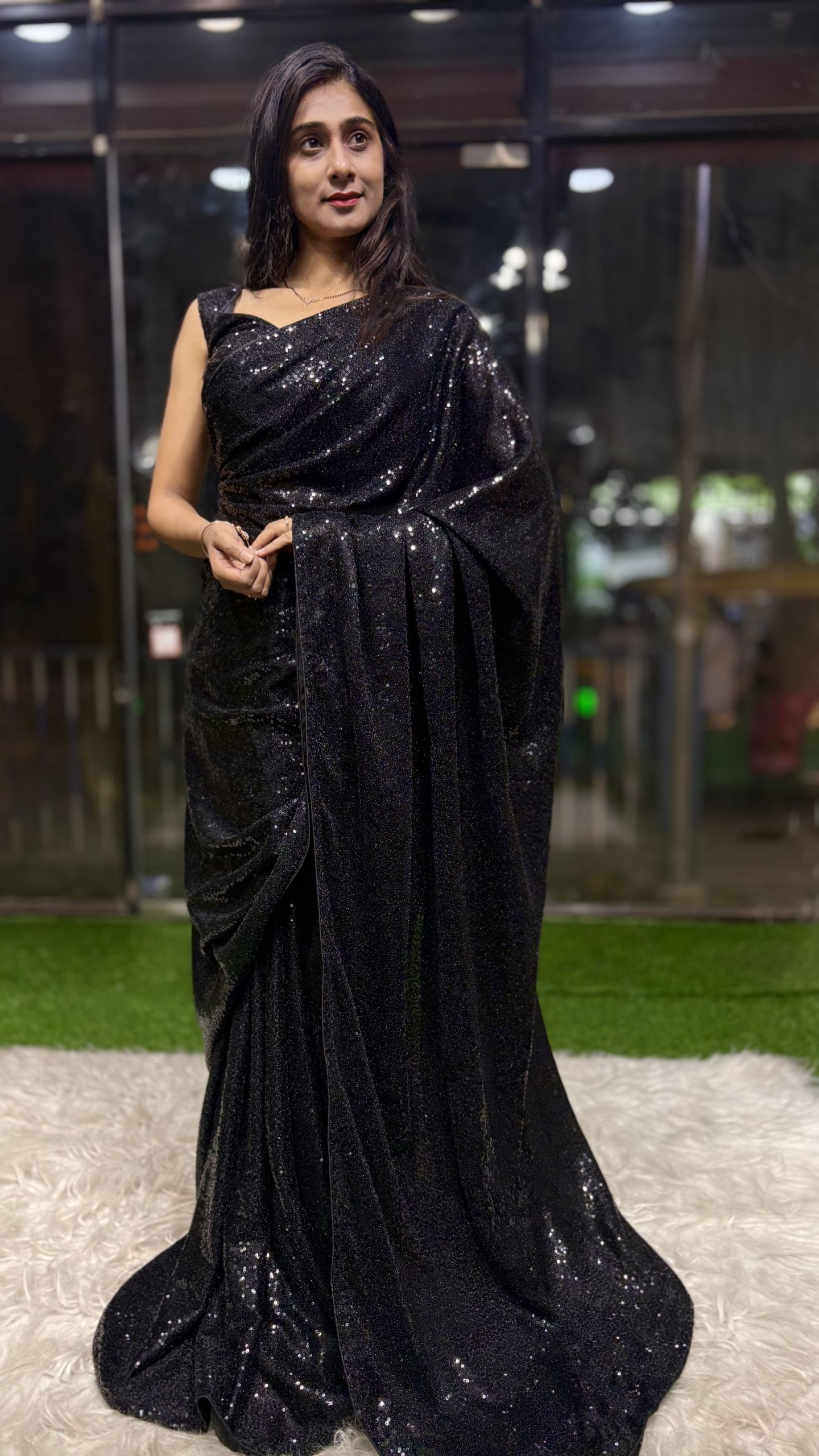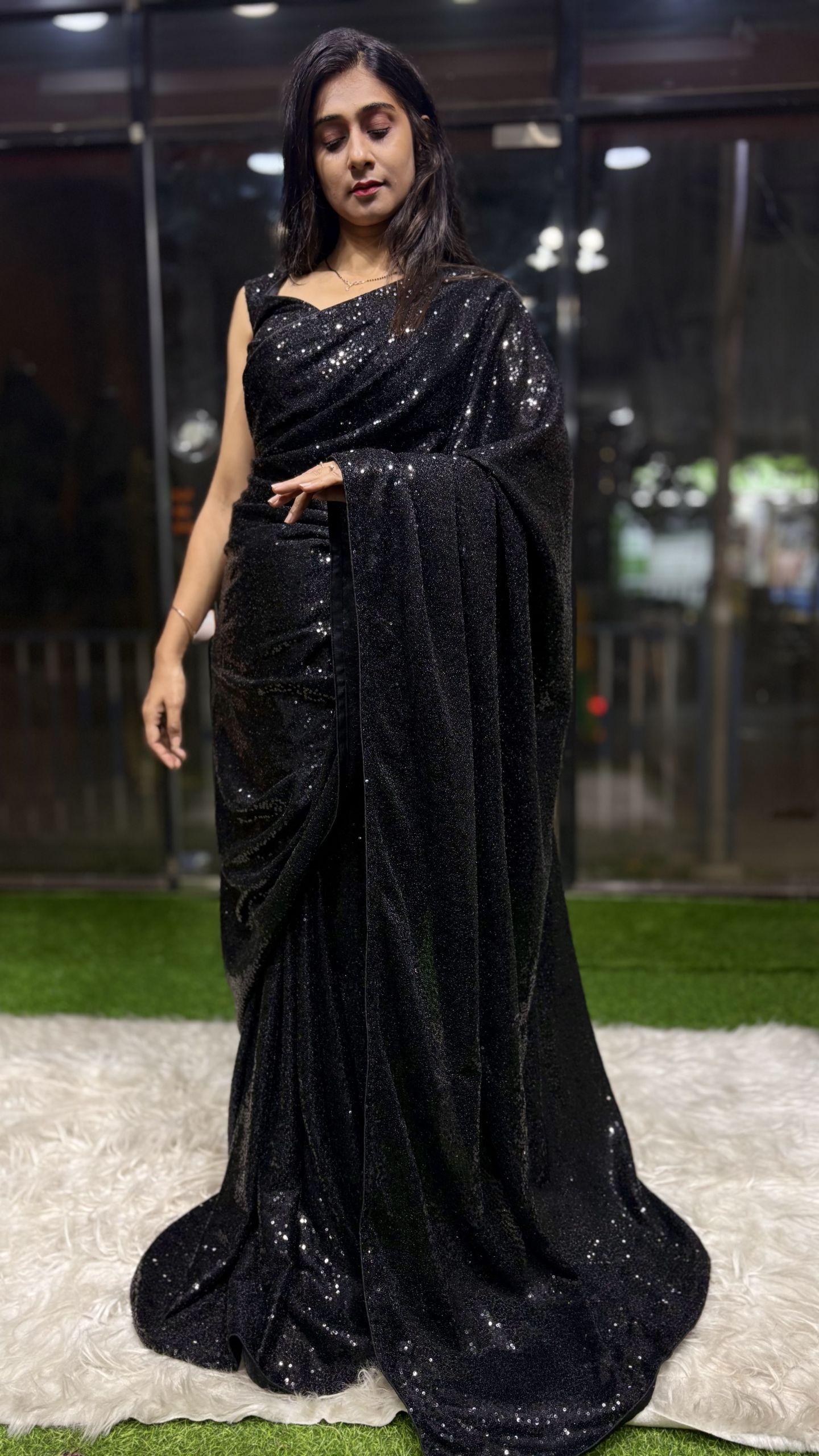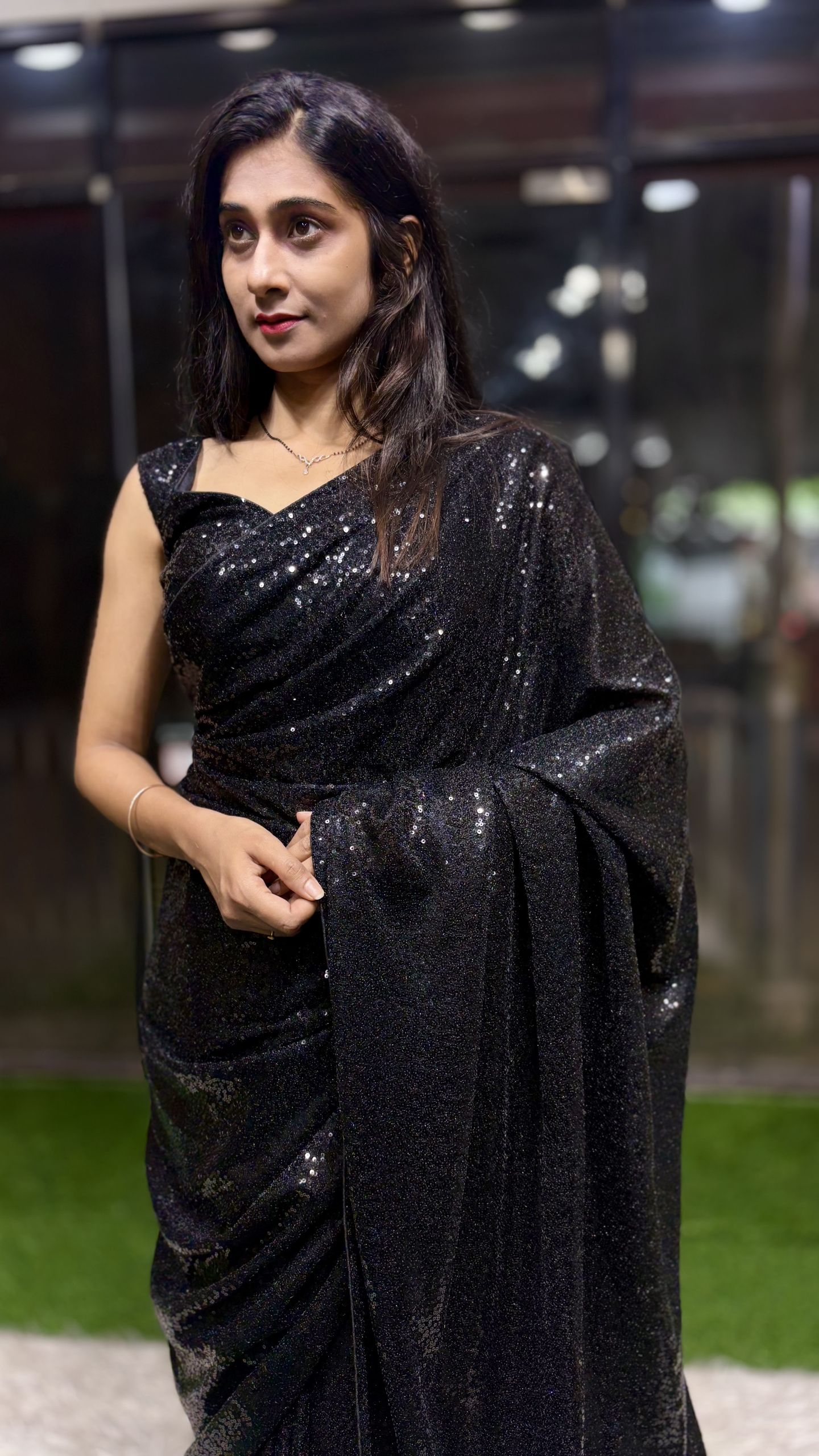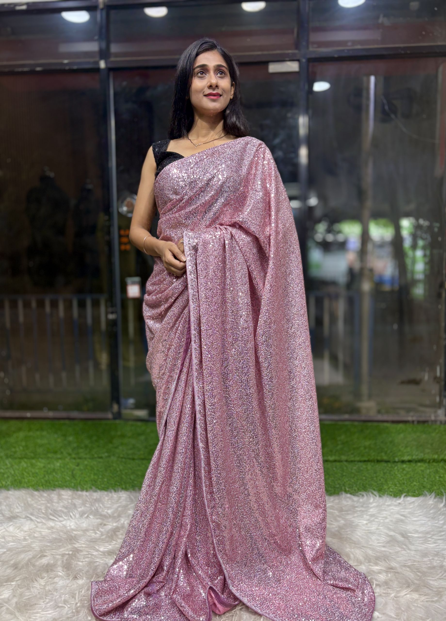 A glamorous saree that blends comfort with bold style. The stretchable lycra fabric shapes beautifully while the sparkling sequins give you a stunning Bollywood-inspired party look. ✨
