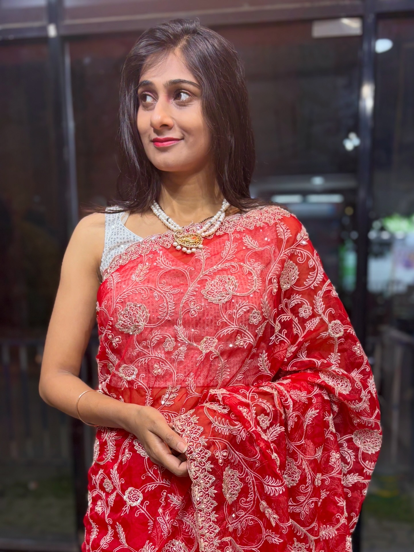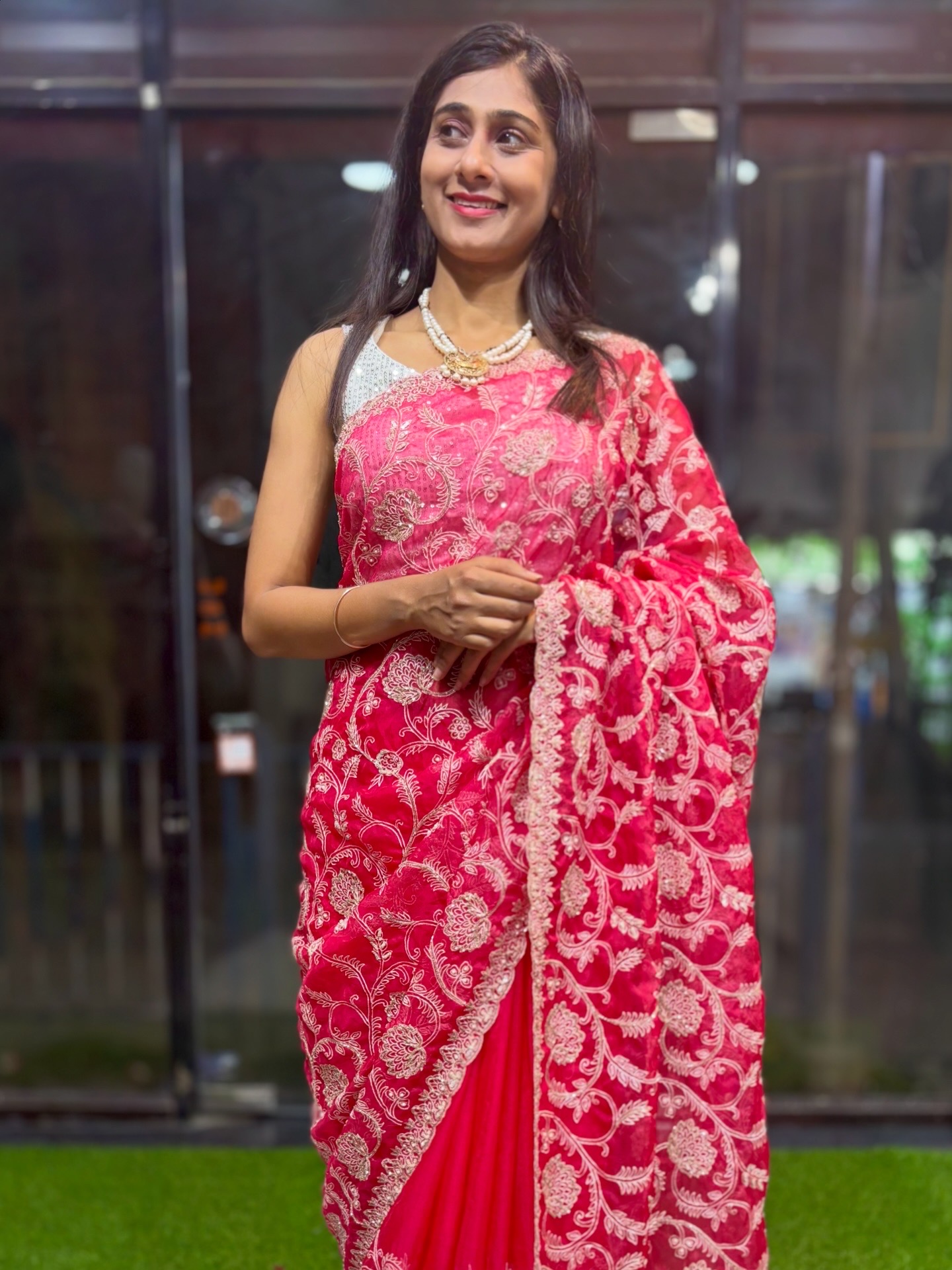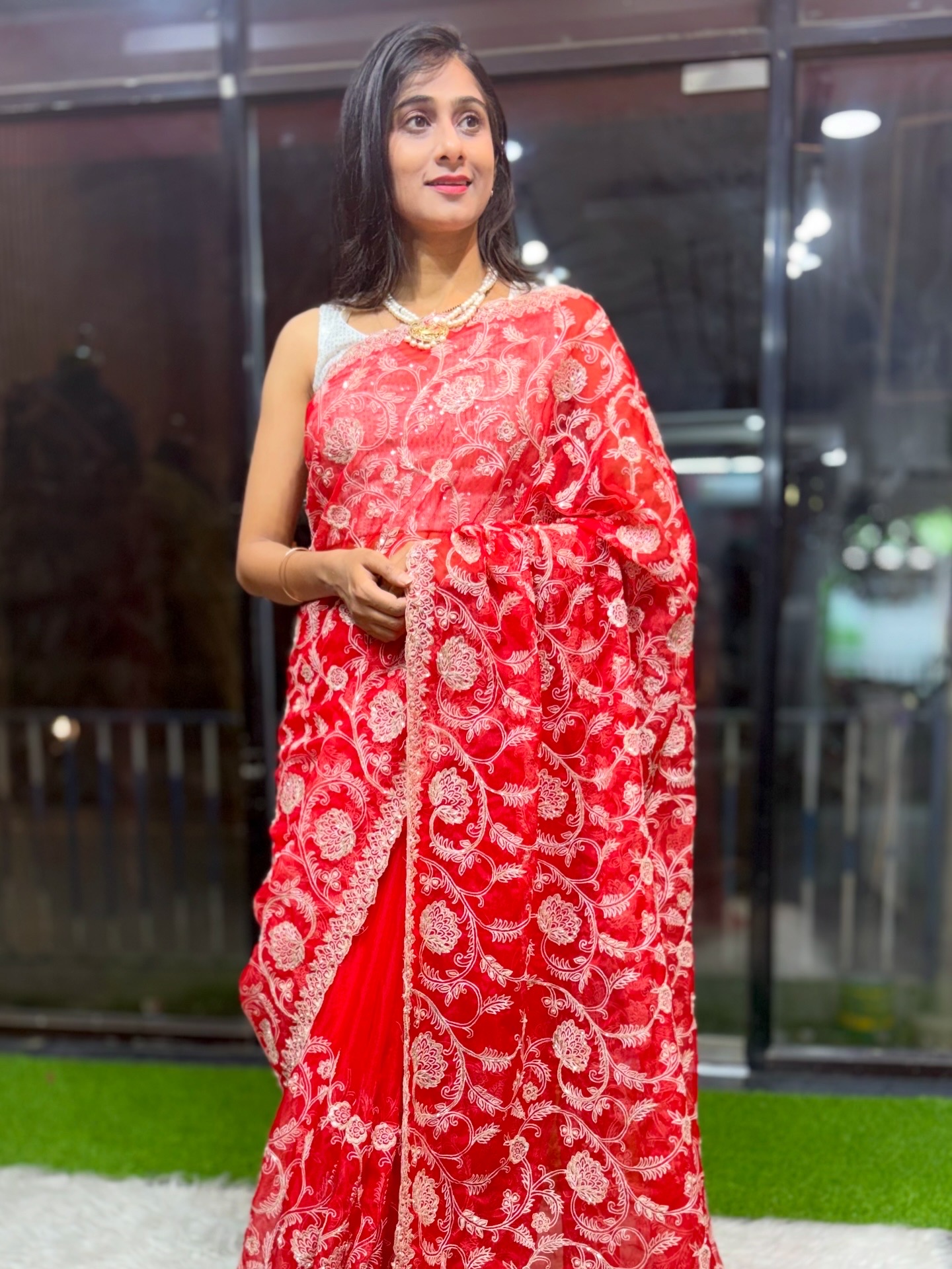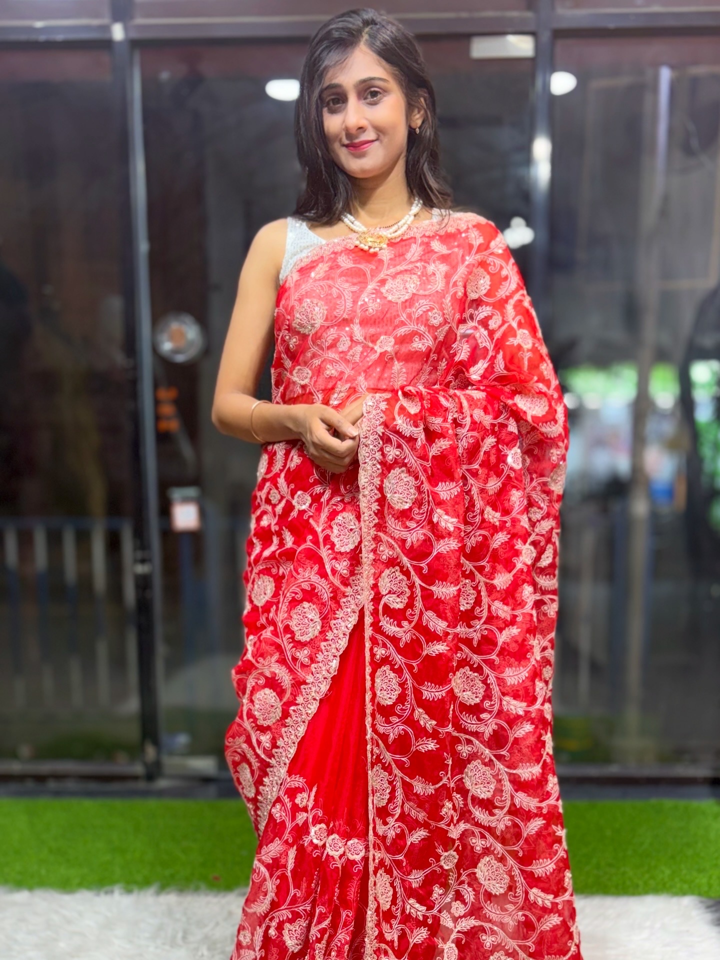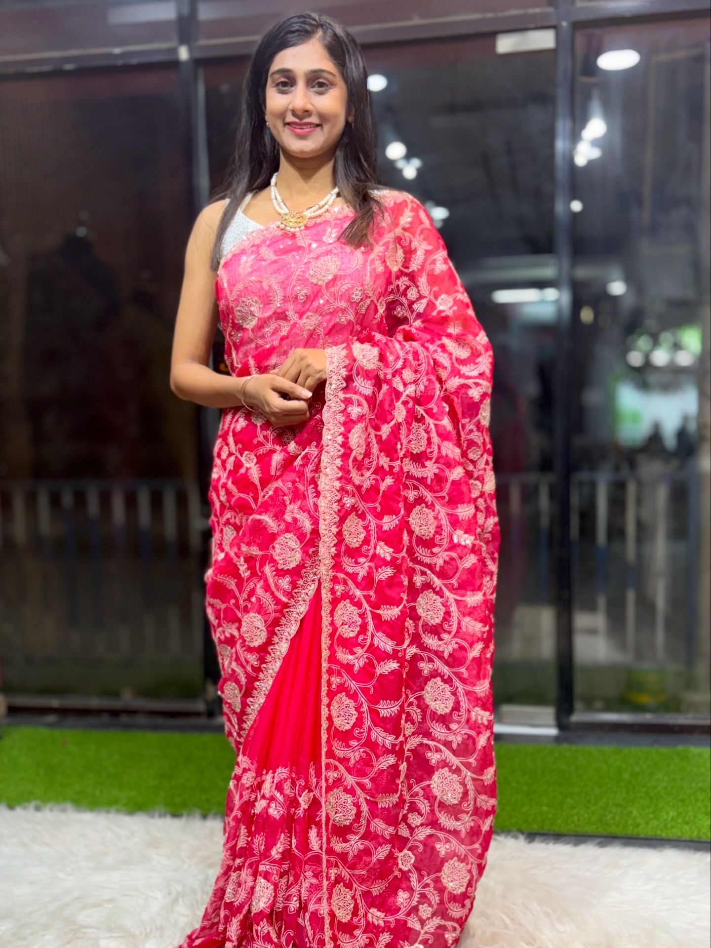 - Elegant cutdana & pearl embellishments